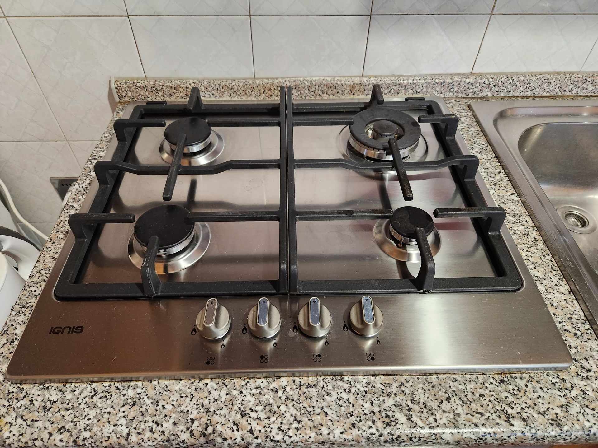 - Kitchen with four valved gas burners